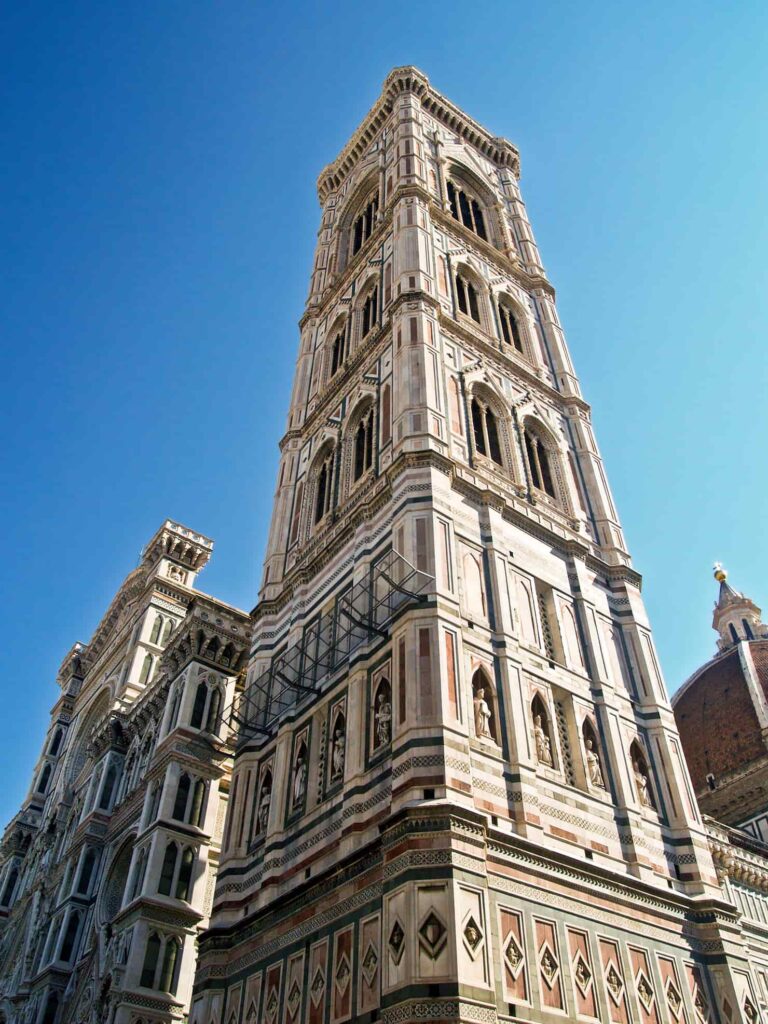 Pensa che in origine era ancora più sottile! Giotto lo progettò altro, stretto ed elegante, ma sarebbe crollato sotto il suo stesso peso, se Nicola Pisano prima e Francesco Talenti poi non avessero raddoppiato lo spessore dei muri interni.