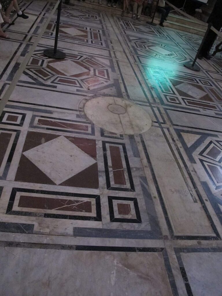 La funzione dello strumento era determinare con estrema accuratezza i solstizi, misurare l’inclinazione dell’asse terrestre, controllare la durata dell’anno solare e verificare gli errori del calendario Giuliano, sostituito nel 1582 dal calendario Gregoriano. Lo Gnomone, quindi, non era un semplice ornamento, ma uno strumento scientifico di precisione.