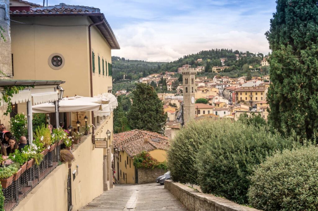 Fiesole dista appena 10 km dal centro di Firenze. Puoi raggiungerla in bici (47 minuti), a piedi (1h e 50′) oppure con il bus numero 7 dalla stazione di Santa Maria Novella.