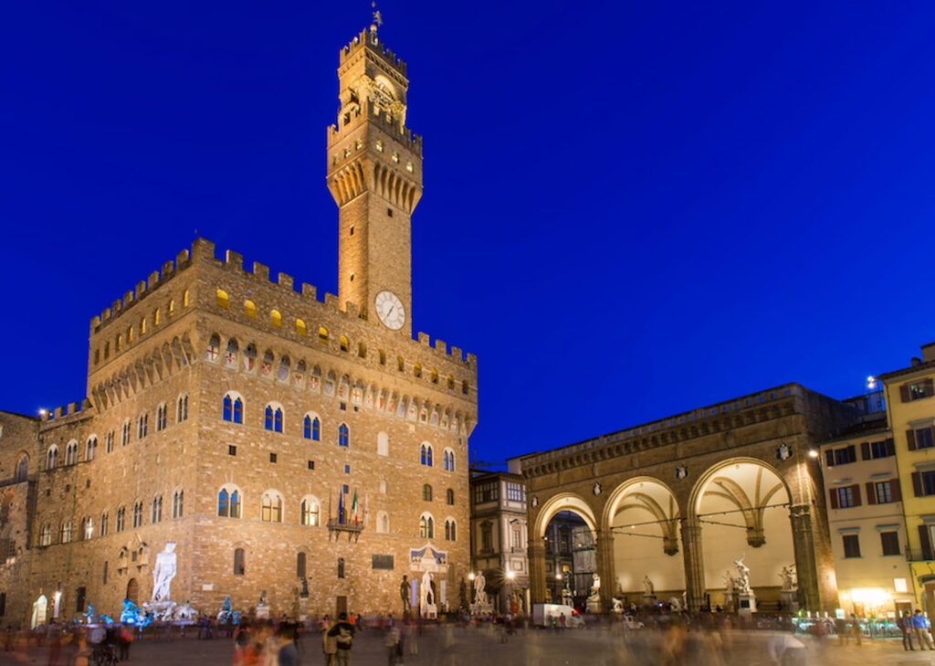 Progettato da Arnolfo di Cambio, dal 1299 è il cuore del potere politico fiorentino. Chiamato in origine Palazzo dei Priori, divenne nel XV secolo Palazzo della Signoria sotto Cosimo de’ Medici.