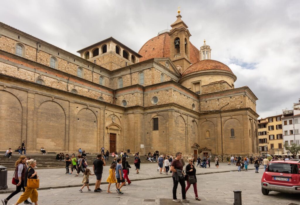 Vi si possono ammirare capolavori di Michelangelo, come la Sagrestia Nuova (con le allegorie scultoree del Giorno, della Notte, dell’Aurora e del Crepuscolo).
